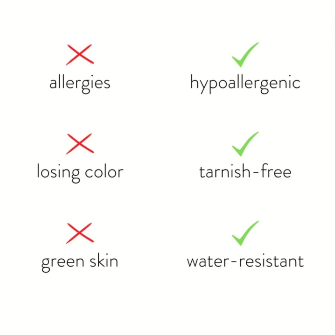 Our jewelry is durable, skin-friendly, tarnish-resistant and waterproof. Each piece is carefully crafted to maintain its shine and provide lasting comfort for everyday wear.