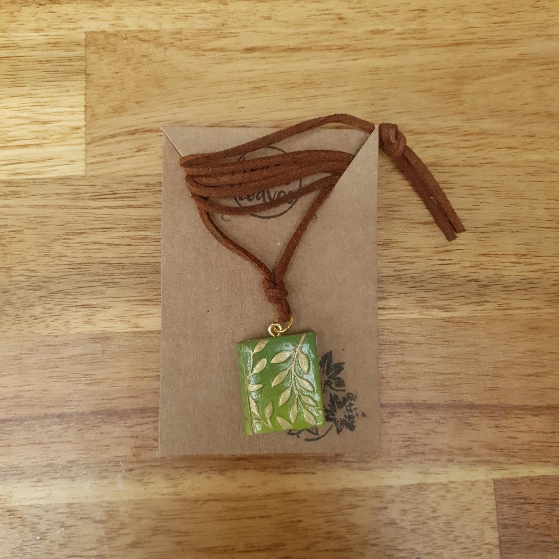 Polymer Clay Leafy Book Pendant Necklace
